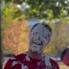 Aka71 was surprised by WGBR with a big sloppy cream pie to the face